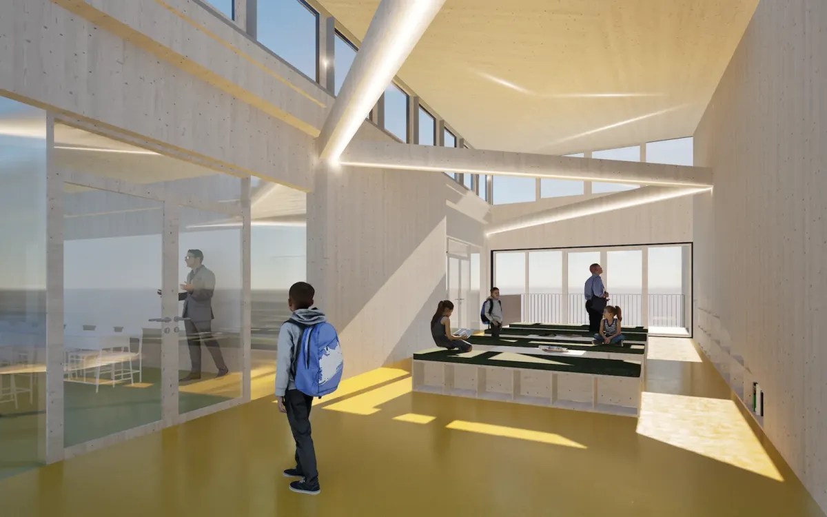 Sustainable Construction: The building will be built from mass timber. The structure and timber façade store around 1,200 tons of CO2, contributing to the building’s sustainability from the beginning.