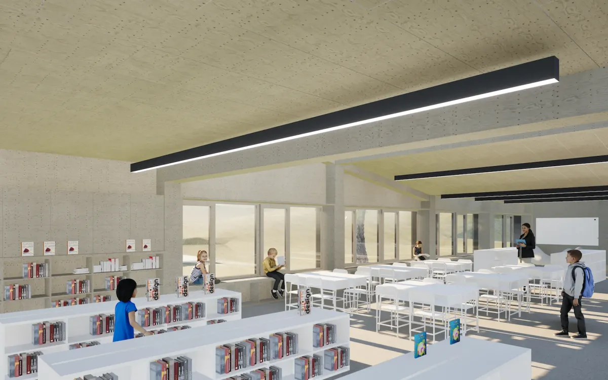 General learning areas and a flexible central space.