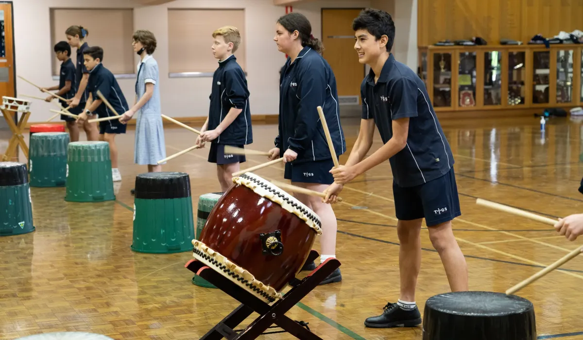 Kim from Taiko Japanese Drumming recently ran a special workshop for Senior School and Junior School students where they got a chance to stand behind a Taiko and learn about the technique and history of Japanese drumming.